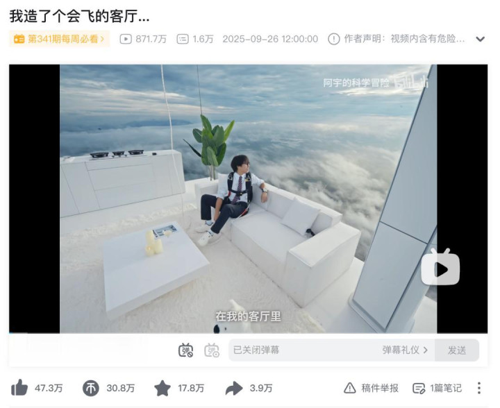 评论区更是卧虎藏龙,有人用相对论分析高空悬浮客厅的可行性,有人靠气象学知识解读设备运行的温压条件,还有人脑洞大开畅想后续玩法,满屏都是几百字的 “小作文”。