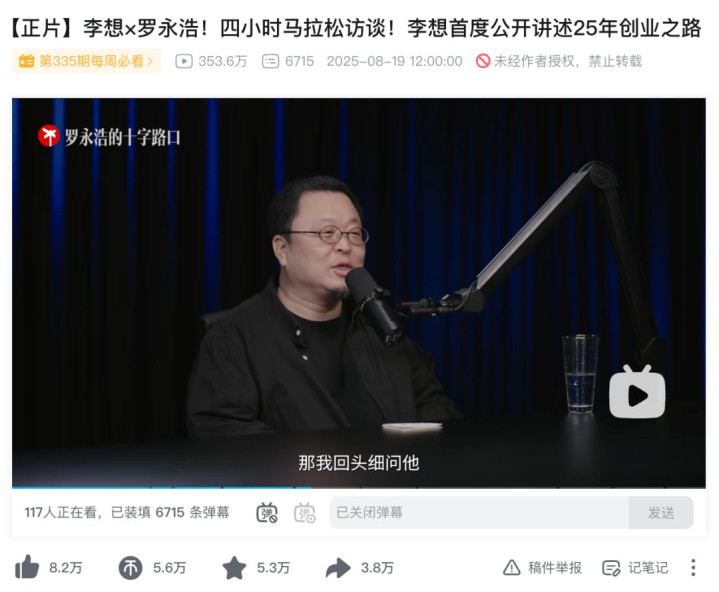 “影视飓风” 的产品评测能扒到核心技术,“食贫道” 的系列纪录片动辄几小时,还有罗永浩和李想的四小时播客,这些内容本身就值得琢磨,不是看个热闹就完了,自然能激发用户的思考欲。
