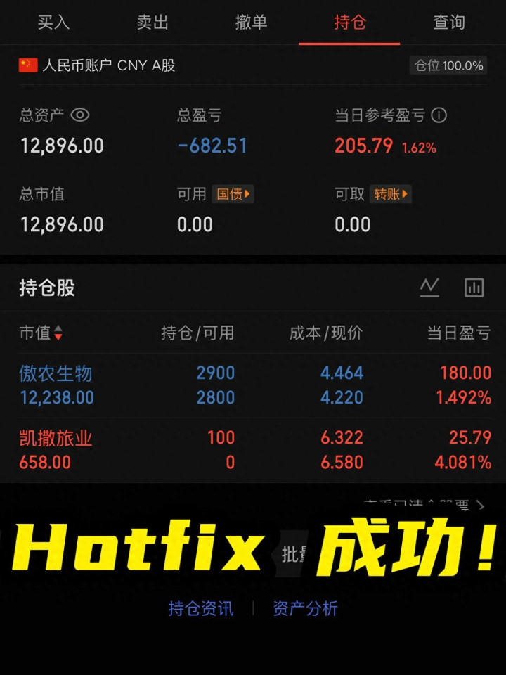 1. 凯撒旅业:执行“版本回滚” (Rollback) 上周四在 6.72 元的位置被洗出局,卖飞后看着它涨,当时心态崩了。 但作为程序员,开云app下载发现 Bug(卖飞)就要修复。今早开盘,趁着情绪分歧,我看准机会在 6.320 果断接回 100 股! 逻辑: 既然看好它,就要敢于在低位纠错。这一波高抛低吸,不仅拿回了筹码,开云还降低了 0.4 元的成本,相当于给代码打了个完美的 Hotfix。