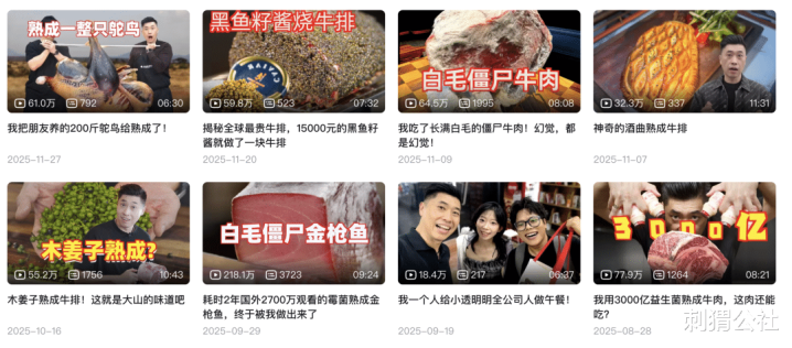 兴趣驱动让创作者摆脱了流量焦虑,敢于深耕垂直领域。如本届百大UP主@燕子堡BBQ学徒Ray,他所专攻的“花式熟成牛排”,是个相当小众的赛道,每次熟成的结果也常不尽如人意,一度,失败才是粉丝最乐于见到的画面。