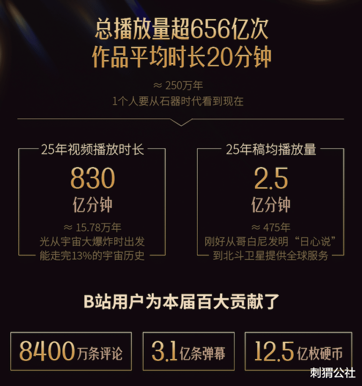这种选拔标准反映在消费数据上,最直观的表现是——仅2025年,本届百大们作品的用户观看时长,便达到了非常吓人的830亿分钟,换算成年,大约是18万年。