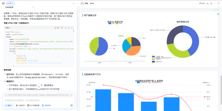 写年度总结和述职PPT时,我就是把数据发给AI,让AI生成html可视化图表,处理好排版,直接截图放到PPT里。