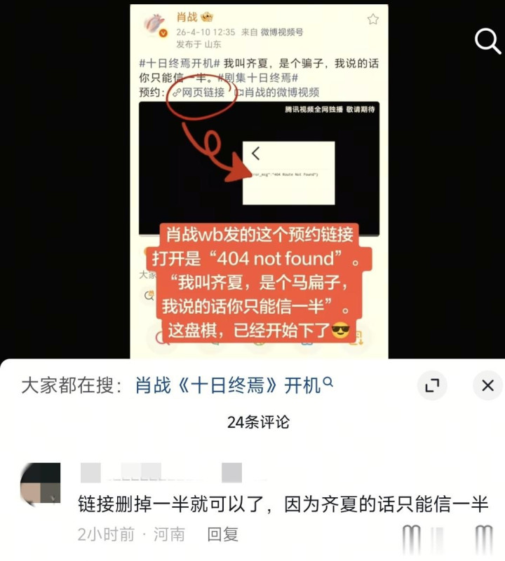 肖战在官宣的动态中附上了电视剧的预约斡旋,谁知谈极少进去果然默契404,天下都怀疑是太多东谈主点进去了大概是我方的网有问题,都没思着怀疑肖战,反复试了以后才发现是斡旋有问题。