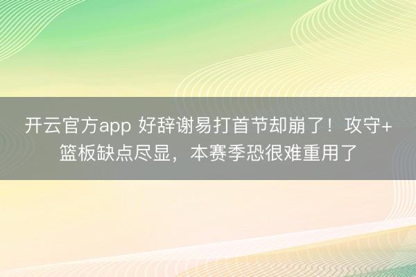 开云官方app 好辞谢易打首节却崩了!攻守+篮板缺点尽显,本赛季恐很难重用了NBA老例赛,开荒者135-119礼服爵士。这场比赛好辞谢易在首节得到上场,可惜他的遵循却相配灾祸。那段工夫杨瀚森勾手不中,契机球莫得把合手,相配缺憾。虽然后续不错造杀伤,同期靠着罚球得到2分。无奈的是,这个球显明不错打进2+1的,怎么力量照旧差点深嗜。 虽然杨瀚森的掩护照旧基本盘,在职何一场比赛,只好有合作,杨瀚森基本上王人不
