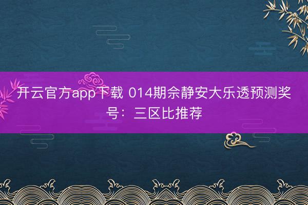 开云官方app下载 014期佘静安大乐透预测奖号:三区比推荐大乐透第2026013期开出奖号:前区03、05、06、23、26;后区01、04。和值为63,跨度为23,龙头为03、凤尾为26。 其中前区三区比3:1:1,012路比为2:0:3,奇偶比为3:2,大小比为2:3,未开出重号,开出1组连号05,06。 三区分析:上期前区三区比为3:1:1,本期推荐三区比为2:2:1。 前一区【