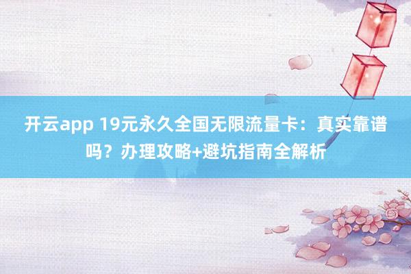 开云app 19元永久全国无限流量卡:真实靠谱吗?办理攻略+避坑指南全解析办卡:微 信 公 众 号 搜【 可可 找 卡】,每天更新运营商官方高性价比套餐!帮你精准匹配适配流量方案,省钱又省心~ “19元就能用全国无限流量?”“永久套餐是真福利还是文字游戏?”——这类广告在短视频平台和电商平台刷屏,但用户实测反馈却两极分化:有人直呼“真香”,有人吐槽“被割韭菜”。本文将通过工信部文件解读、运营商规则拆解