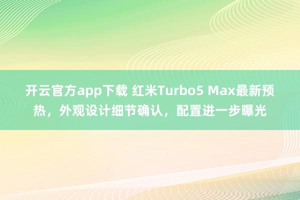 开云官方app下载 红米Turbo5 Max最新预热,外观设计细节确认,配置进一步曝光最近机圈新品又开始卷起来了,而红米这边的表现有点猛。 官方一句“2.5K 档性能之战,开局即终局”,直接就把网友们对 REDMI Turbo 5 Max 的期待值拉满了。 再加上小米品牌总经理@卢伟冰 为新品亲自下场放话—— “有信心是 2.5K 价位 2026 年最好的选择。” 这让机哥不禁想要了解,这款新机的底气到底在哪。