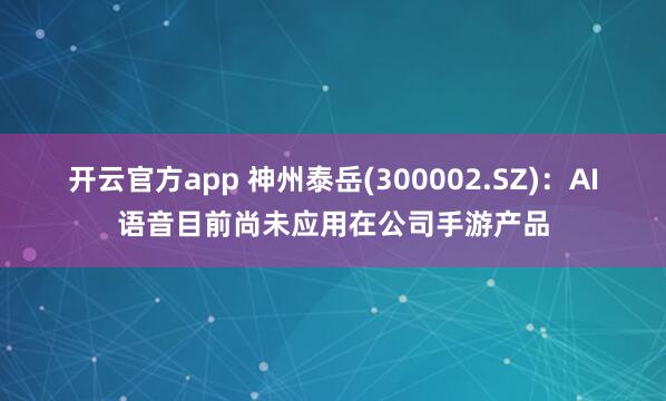 开云官方app 神州泰岳(300002.SZ):AI语音目前尚未应用在公司手游产品{jz:field.toptypename/} 格隆汇1月19日丨神州泰岳(300002.SZ)在投资者互动平台表示,AI语音目前尚未应用在公司手游产品。