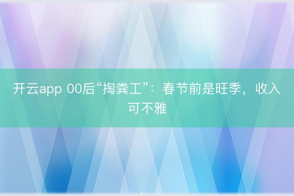 开云app 00后“掏粪工”:春节前是旺季,收入可不雅【温存朝上丨九派新闻 2026 春节畸形报说念⑰】 春节相近,明白管说念、粪便清运迎来一年中最重荷的时节。 东说念主们民俗称该行业从业者为"掏粪工",但他们的责任业务不啻于此。他们驾驶专科清污车辆,穿梭在小区、餐馆与街巷之间:不幼年区要赶在年前明白计帐化粪池;空了一年的房屋,下水说念容易堵塞;旅店宴席加多,隔油池也容易满溢,齐离