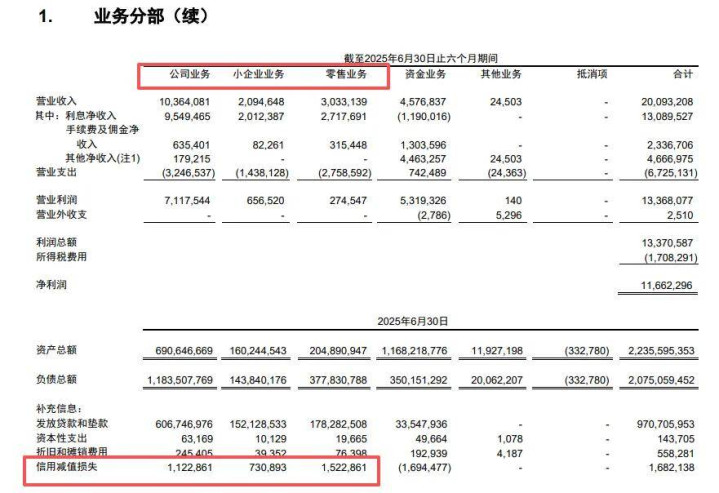 事实上,杭州银行零售业务的确需要加强管理,2025年中报信用减值损失为15.23亿元,同比增加9.599亿元,增幅170.51%,已经超过公司业务、小企业业务带来的损失了。