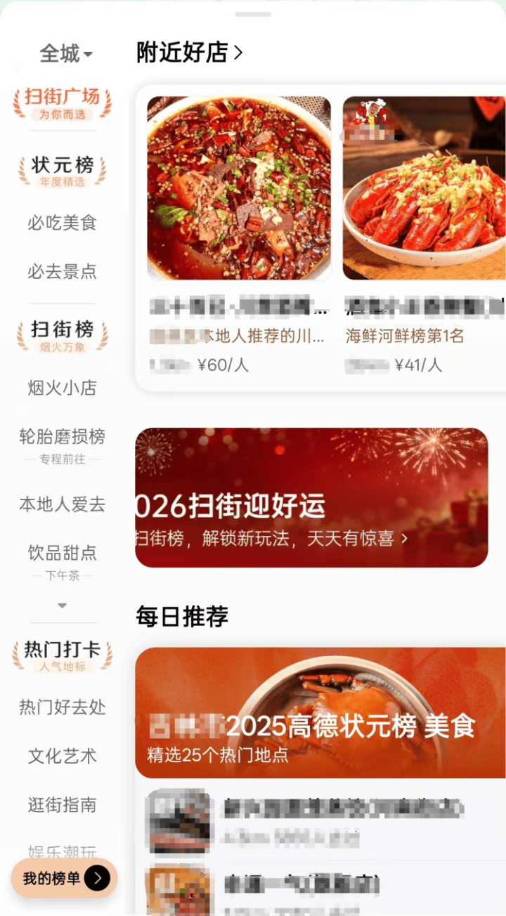 高德的扫街榜在整体设计上,与抖音吃喝玩乐榜、大众点评榜单相近,区别在于,高德在传统榜单体系上新增了动态榜单,按照高德CEO郭宁的说法,高德扫街榜通过与物理世界持续交互,不断实现自我进化。这不仅是一次产品升级,更是高德迈向下一代空间智能的关键一步。