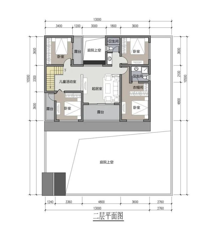 三卧一厅:二层规划了三间卧室。中间的“儿童活动室/起居室”是亮点,给孩子们提供了一个专属的玩耍寰宇,幸免他们弄坏楼下的产物。