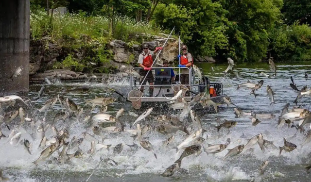 从墨西哥湾到明尼苏达,密西西比河的支流粉饰好意思国31个州,对于鲤鱼来说就像是一条条高速公路,鱼群每年鼓舞约50公里。