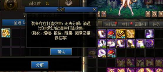 可以触发高价值装备误分解打造保护的机制导致无法被分解