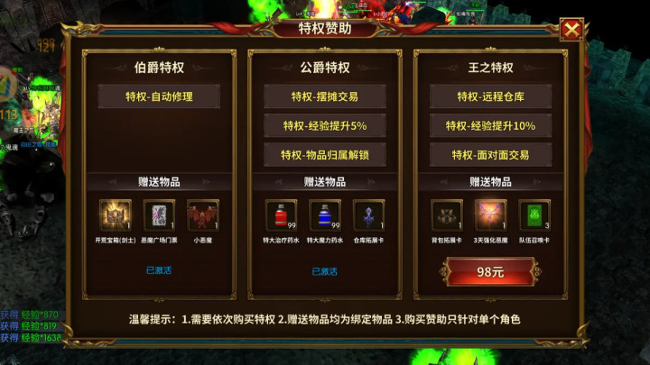 交易模式双自由,变现无束缚。游戏支持自动摆摊与面对面交易双模式,且全程零手续费抽成,68档位即可解锁永久零手续费摆摊权限,98档位开放面对面交易功能,投入成本极低,短期内即可靠卖货回本。摆摊可24小时自动售卖,零散道具无需手动值守;面对面交易则能规避恶意压价,刷出极品卓越装备、创造宝石等高价值道具时,可直接对接买家验货成交,效率拉满且收益足额到账。所有核心资源均无绑定限制,祝福宝石、灵魂宝石、技能书等硬通货,刷取后可直接上架交易,无任何变现门槛。