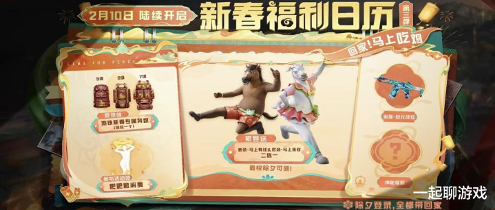 而接下来呢,咱们就一起来汇总下新版本的“新春福利”吧,不仅有飞行器、5级枪、新套装,而且还有“马皮”2选1哦!