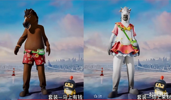言归正传,2选1的“马皮”一个是黑色,一个是白色,但完全与想象中的“白马王子”不沾边,这种动物主题的人偶服,在《和平精英》中属于常见类型,但大多数都是熊、兔子之类的可爱动物,没想到会有一天出现这样的“马皮”,哭笑不得的同时,天哥也陷入了沉思:黑马、白马,2选1的话,你们会怎么选呢?嘿,欢迎与天哥一起交流讨论。