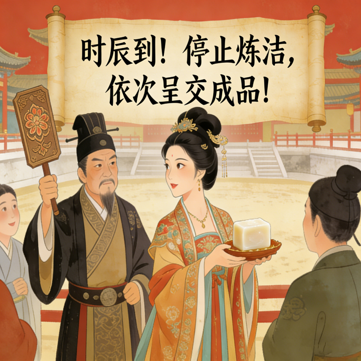 “时辰到!停止炼洁,依次呈交成品!”主簿手持令牌高声传令,声音穿透喧闹的赛场。