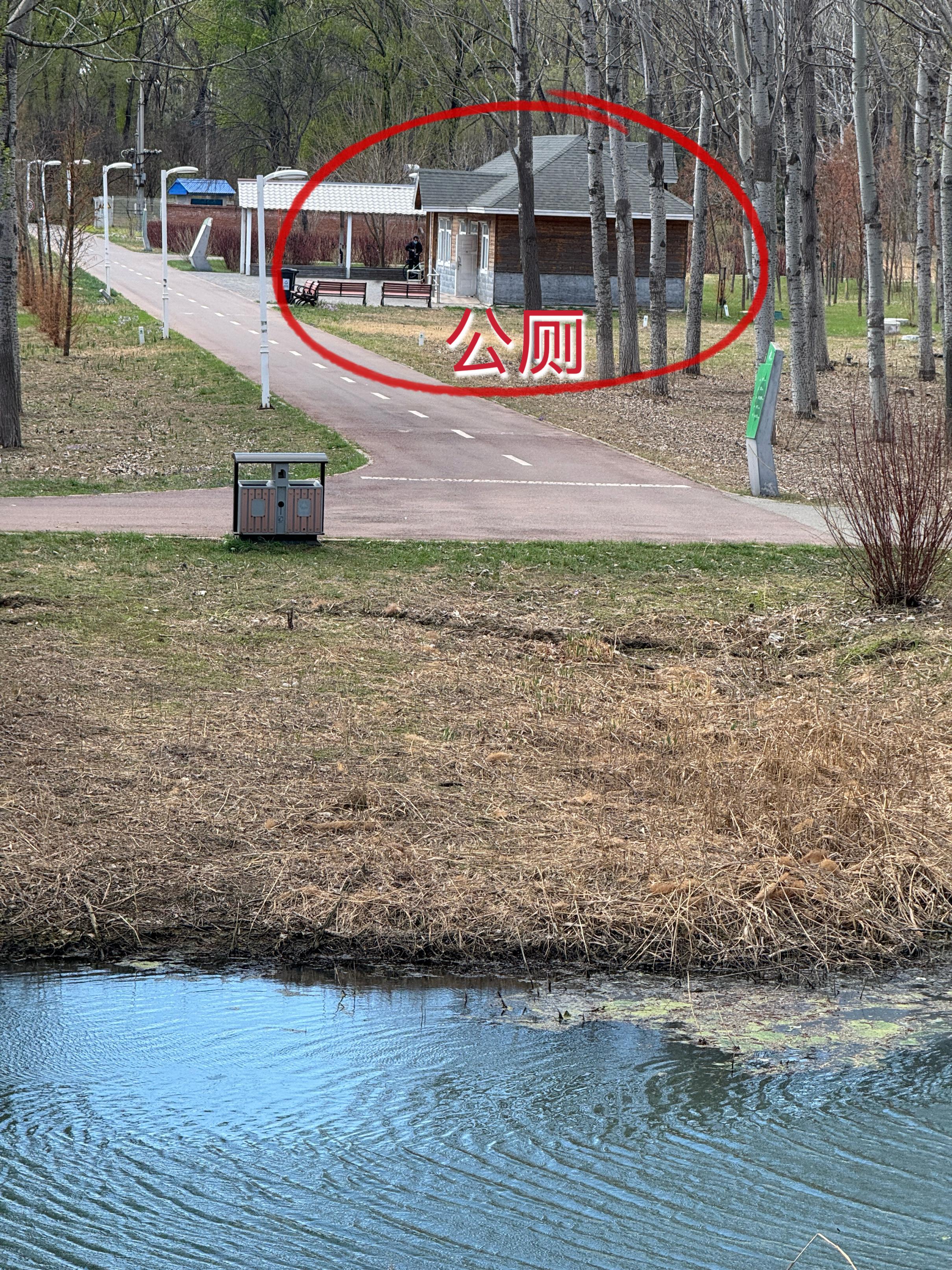 顺义新城滨河丛林公园,旅客与公厕“望河兴叹”。