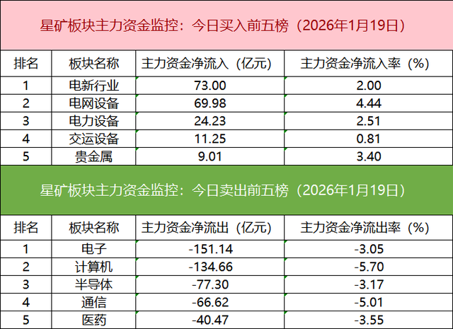 从主力板块资金监控数据来看,电新行业主力资金净流入居首。