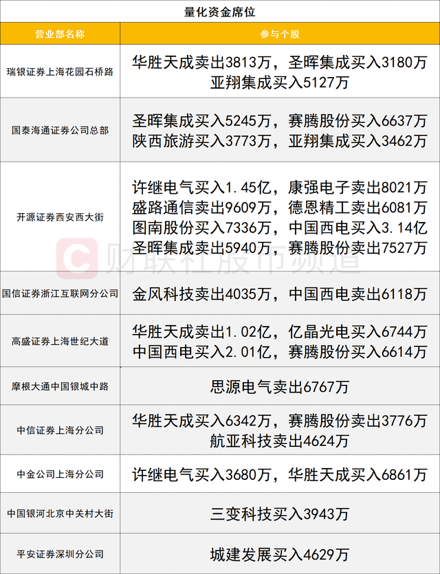 量化资金活跃度有所降低。多路量化资金激烈博弈中国西电,两家量化资金(开源证券西安西大街、高盛中国上海世纪大道)分别买入3.14亿、2.01亿,另一家量化资金(国信证券浙江互联网分公司)卖出6118万。