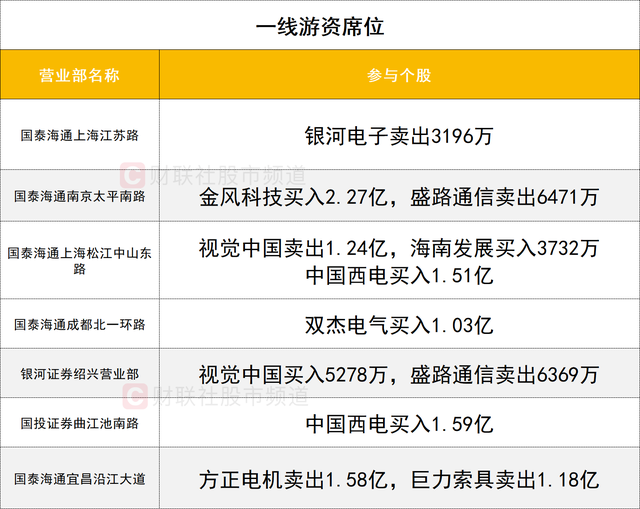 一线游资活跃度明显降低,商业航天人气股金风科技获一家一线游资(国泰海通证券南京太平南路)买入2.27亿。