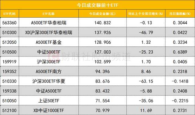 从成交额前十的ETF来看,开云官方app下载A500ETF华泰柏瑞(563360)成交额位居首位,XD沪深300ETF华泰柏瑞(510300)成交额位居次席。