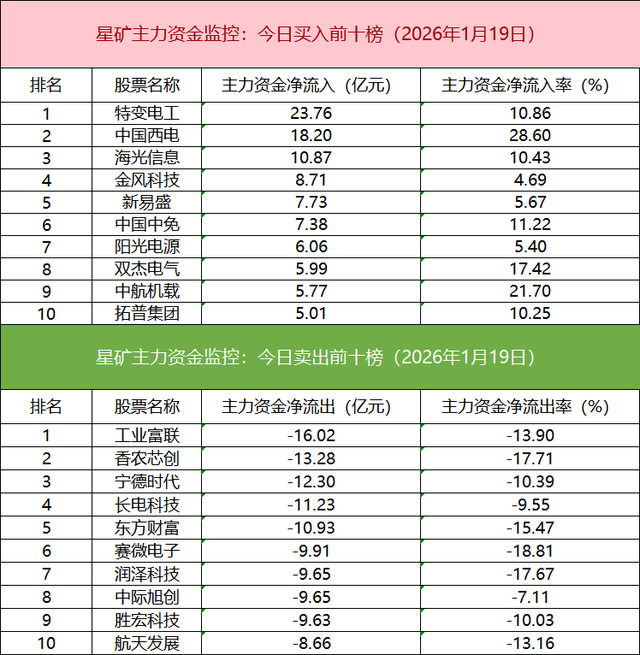 主力资金流出前十的个股所属板块较为分散,工业富联净流出居首。