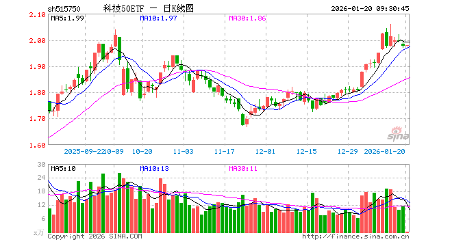 1月20日,科技50ETF(515750)开盘涨0.00%,报1.977元。科技50ETF(515750)重仓股方面,立讯精密开盘涨0.07%,阳光电源跌0.29%,亿纬锂能涨0.37%,歌尔股份涨0.13%,宁德时代涨0.32%,长川科技跌0.79%,烽火通信涨1.76%,开云寒武纪跌0.19%,领益智造跌0.32%,鹏鼎控股涨0.04%。