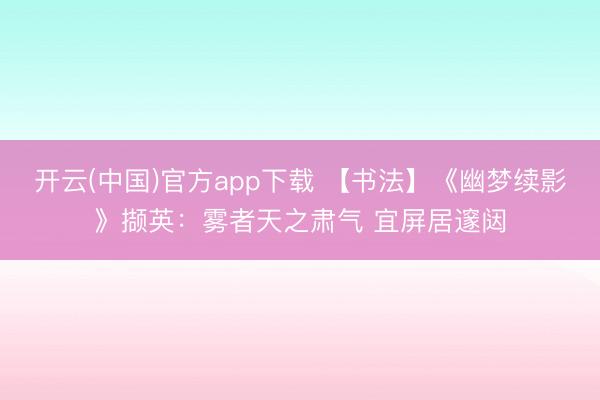 开云(中国)官方app下载 【书法】《幽梦续影》撷英:雾者天之肃气 宜屏居邃闼图片 {jz:field.toptypename/} 《幽梦续影》撷英 雾者天之肃气 宜屏居邃闼 图片 【书法】 《幽梦续影》撷英 雾者天之肃气 宜屏居邃闼 图并书:梁佛心 二零一九年十一月十九日 本站仅提供存储服务,所有内容均由用户发布,如发现有害或侵权内容,请点击举报。
