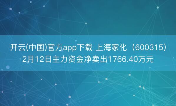 开云(中国)官方app下载 上海家化(600315)2月12日主力资金净卖出1766.40万元证券之星音尘,限制2026年2月12日收盘,(600315)报收于21.22元,着落2.75%,换手率1.38%,成交量9.3万手,成交额1.99亿元。 {jz:field.toptypename/} 2月12日的资金流向数据方面,主力资金净流出1766.4万元,占总成交额8.9%,游资资金净流出1795.8万元,占总成交额9.