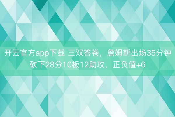 开云官方app下载 三双答卷,詹姆斯出场35分钟砍下28分10板12助攻,正负值+6{jz:field.toptypename/} 北京手艺2月13日,湖东说念主主场124-104投降独行侠。湖东说念主球星詹姆斯出场35分21秒,投篮20投10中,拿下28分10板12助攻的三双。 詹姆斯全场出场35分21秒,投篮20投10中,三分7中2,罚球7罚6中,拿下28分10篮板12助攻的三双,另外还有1个盖帽,正负值为