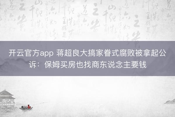开云官方app 蒋超良大搞家眷式腐败被拿起公诉:保姆买房也找商东说念主要钱2026年3月17日,最能手民查察院发布音讯,十四届宇宙东说念主大常委会原委员、宇宙东说念主大农业与农村委员会原副主任委员蒋超良涉嫌纳贿一案,由国度监察委员会走访散伙,移送查察机关审查告状。最能手民查察院照章以涉嫌纳贿罪对蒋超良作出逮捕决定,并指定由江苏省南京市东说念主民查察院审查告状。近日,南京市东说念主民查察院已向南京市中级