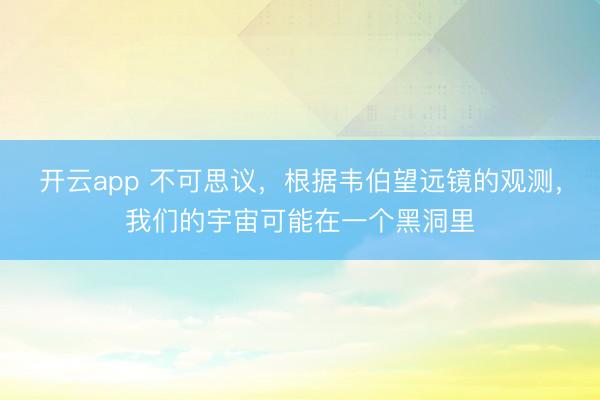 开云app 不可思议,根据韦伯望远镜的观测,我们的宇宙可能在一个黑洞里大家好,我是魅力科学君,今天我们要聊的话题是,科学家根据韦伯望远镜的观测数据,提出了一个令人觉得不可思议的观点,即:我们的宇宙可能在一个黑洞里。为什么这么说呢?这就要从星系的旋转方向讲起。 图片 根据宇宙学标准模型,宇宙中星系的旋转方向应该是随机的,而由于它们的旋转方向只有顺时针和逆时针这两种,因此从整体上来讲,宇宙中众多星系向