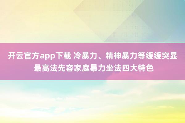 开云官方app下载 冷暴力、精神暴力等缓缓突显 最高法先容家庭暴力坐法四大特色涉家庭暴力坐法案件一直备受社会温煦,各级法院藏身审判职能,矍铄照章从重办办多样形势的家庭暴力坐法,助力全社会形成反家暴理念和共鸣。据最妙手民法院先容,家庭暴力坐法呈现以下特色: 365建站客服QQ:800083652 一是从主体看,多为男性针对女性实验,施暴者多为中后生且文化进度较低。 二是从两边关联看,跟着经济社会发展和生存情