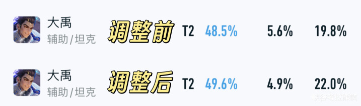 大禹的核心优势极为突出,拥有持续治疗+全图支援+多重控制等团队增益,还具备强开团,分割战场的能力,但由于机制强,数值弱的问题,胜率始终难以提高。