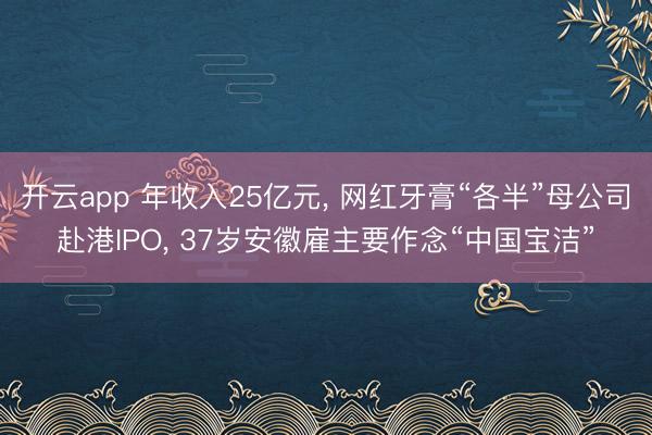 开云app 年收入25亿元, 网红牙膏“各半”母公司赴港IPO, 37岁安徽雇主要作念“中国宝洁”图源:Pexels 港交所不时迎来内地枉然品牌公司。 3月27日,网红口腔顾问品牌“各半”母公司——深圳小阔科技股份有限公司(下称:小阔科技)向港交所递交招股发挥书,拟主板挂牌上市,招银海外为独家保荐东说念主。 小阔科技由创举东说念主尹阔2015年竖立于广东深圳,是一家家具涵盖牙膏、漱涎水的好意思容口腔顾问公司;2018年,公司