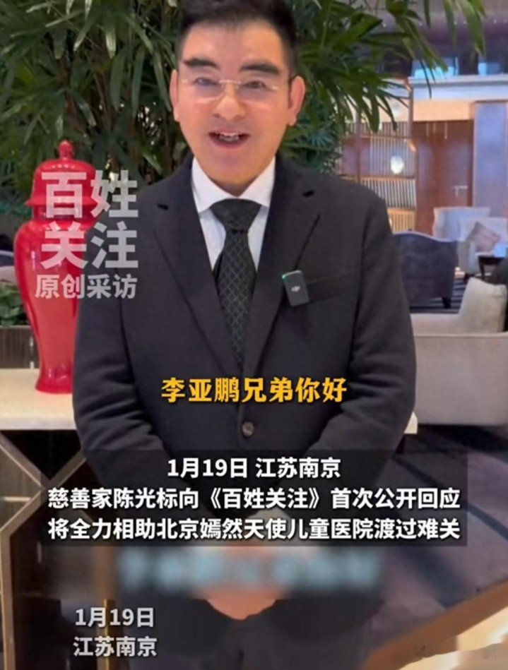 知名慈善家陈光标公开喊话演员李亚鹏,表示愿意提供资金援助,帮助其创办的北京嫣然天使儿童医院渡过难关。
