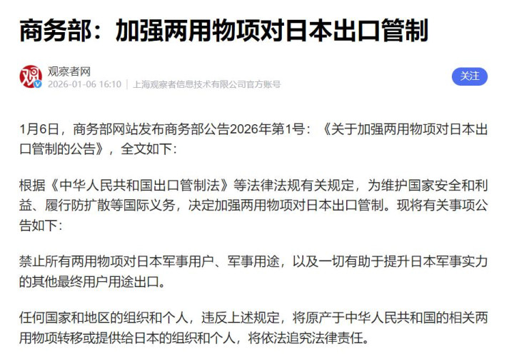最具有震慑力的举措莫过于2026商务部一号公告:加强对日本两用物项出口管制,其中最关键的一项正是对日本来说战略依赖的,稀土。