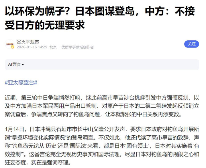 日本打着环保的幌子,实则再次试图对钓鱼岛“实地掌控”。