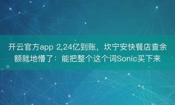 开云官方app 2.24亿到账,坎宁安快餐店查余额就地懵了:能把整个这个词Sonic买下来2026年2月20日,据好意思国篮球媒体Legion Hoops音尘,底特律活塞中枢凯德·坎宁何在专访中初度共享了我方签下5年2.24亿好意思元顶薪条约后的真确感受。一段发生在快餐得来速的小细节,让这位亿元球星的朴实一面被更多东谈主看见。 手脚2021年NBA选秀状元,坎宁安从过问定约起就被视作活塞重建的中枢但愿。生存前期他虽遇