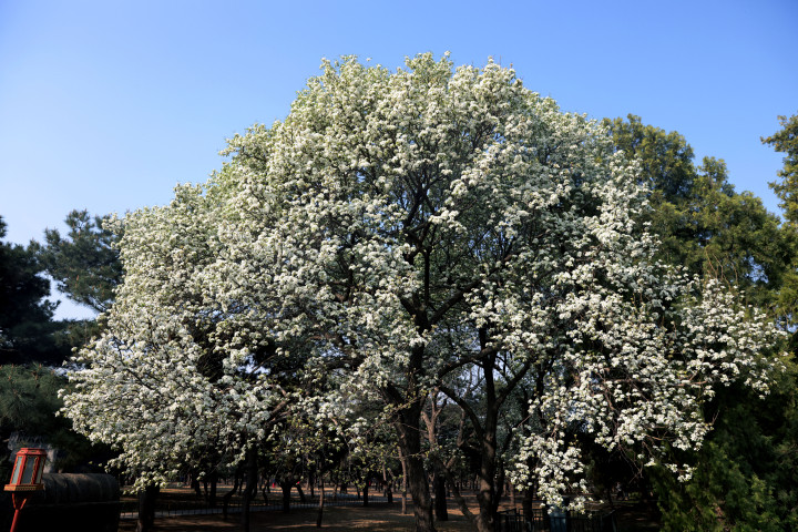 被雄壮网友誉为“神树”的还有一棵梨树——北神厨近邻的杜梨。这株杜梨花开如瀑,灿烂绝顶,每年冒失直快之后迎来盛花期,有网友描绘花随风落的场景——像下了一场暴雪。市民张先生每年王人会去不雅赏这株梨树,千里浸在春日的幸福感中。他也一直有个疑问,这样好意思的梨花,会结梨子吗?他究诘了一位天坛公园职责主说念主员,对方说,秋子梨树会界限,但小果子又涩又难吃。