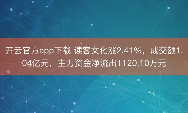 开云官方app下载 读客文化涨2.41%,成交额1.04亿元,主力资金净流出1120.10万元起首:证券-红岸职责室 2月13日,读客文化盘中高潮2.41%,截止09:35,报13.62元/股,成交1.04亿元,换手率2.81%,总市值54.52亿元。 资金流向方面,主力资金净流出1120.10万元,特大单买入222.82万元,占比2.15%,卖出611.25万元,占比5.90%;大单买入970.27万元,占比9.37%