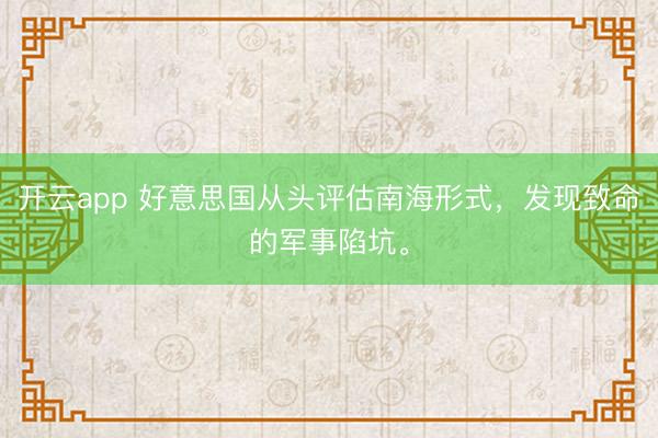 开云app 好意思国从头评估南海形式,发现致命的军事陷坑。逛好意思国收集论坛时,总能刷到一个卓著骄气的发问。老好意思们一脸不明,口吻里还带着点嘲讽:中国费那么大劲在南海填岛,明知谈当代构兵里那等于固定不动的坐标,几发导弹就能炸平,到底图什么? 把目光拉到今天,再回头看那些岛礁,你就会豁然轩敞。这那里是什么活靶子?分明是我们给敌手挖好的坑,一个能吞掉他们扫数资源的无底洞。 我们这招平时本